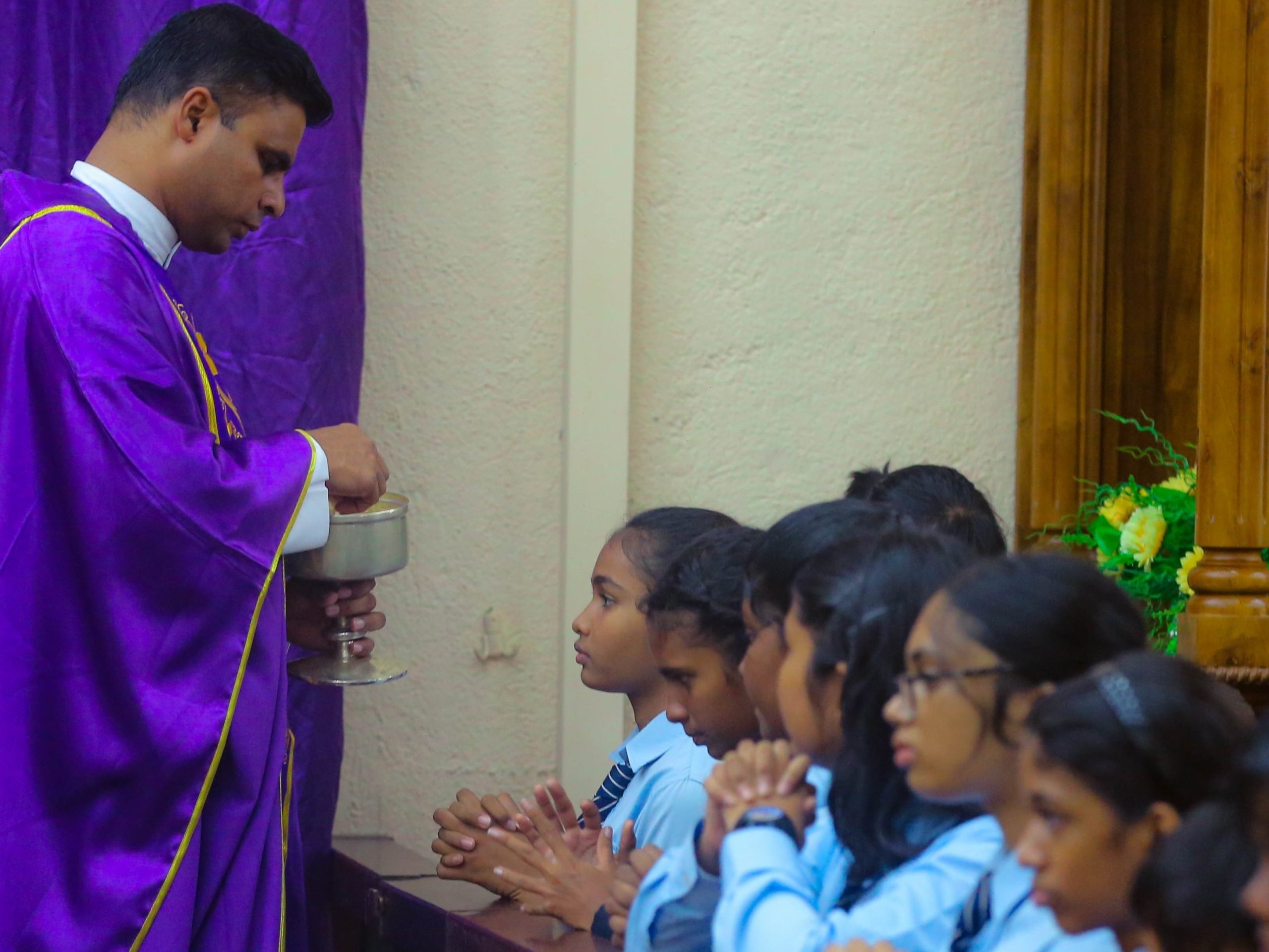 Being a Catholic International School, equal importance is given to holistic activities such as the Holy Eucharist, which is the source and summit of the Catholic faith, and is celebrated every first Friday and on other obligatory days. Opportunities are provided for the Catholic students to prepare and receive the sacraments such as the First Holy Communion, Sacrament of Reconciliation and Confirmation. During the season of Lent, the College organizes a Lenten retreat for the Christian students while the nativity play and carol service is held annually in December. Furthermore, other religions such as Hinduism, Buddhism and Islam are also taught as students from these faiths are enrolled without discrimination.